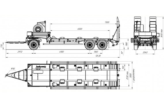 Главная Каталог Полуприцеп- и прицеп-тяжеловоз Прицеп-тяжеловоз Прицеп ПВ-20, механические трапы, рессорная подвеска