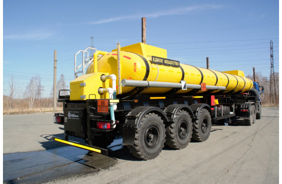 Материал: химстойкое стекловолокно, емкость: 22 куб.м., сечение: эллипсное, конструкция: однослойная или трехслойная (волокно, утеплитель, волокно), крепление: при помощи стяжных лент, перевозимые жидкости: кислоты/едкие вещества/нефть/техвода/щелочные и солевые растворы, автошины 425/85R21