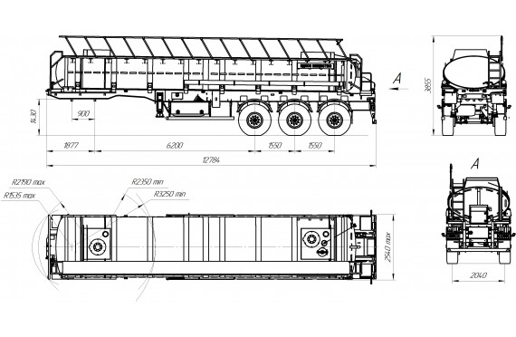 Материал: химстойкое стекловолокно, емкость: 20 куб.м., сечение: эллипсное, конструкция: однослойная или трехслойная (волокно, утеплитель, волокно), крепление: при помощи стяжных лент, перевозимые жидкости: кислоты/едкие вещества/нефть/техвода/щелочные и солевые растворы, автошины 425/85R21