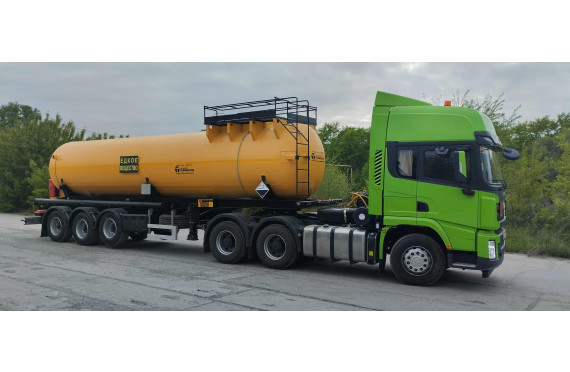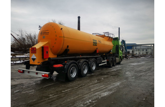Полуприцеп-цистерна из стеклопластика 23,5 куб. м., БЕЗ утеплителя, для перевозки кислот/едких веществ/нефти/техводы/щелочных и солевых растворов, автошины 385/65R22,5
