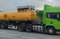 Материал: химстойкое стекловолокно, емкость: 22,5; утепленная, перевозимые жидкости: кислоты/едкие вещества/нефть/техвода/щелочные и солевые растворы, автошины 385/65R22,5; передняя ось - подъемная