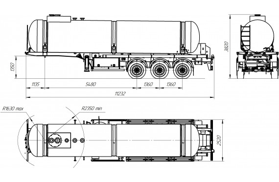 Материал: химстойкое стекловолокно, емкость: 20 куб.м., сечение: эллипсное, конструкция: однослойная или трехслойная (волокно, утеплитель, волокно), крепление: при помощи стяжных лент, перевозимые жидкости: кислоты/едкие вещества/нефть/техвода/щелочные и солевые растворы, автошины 385/65R22,5